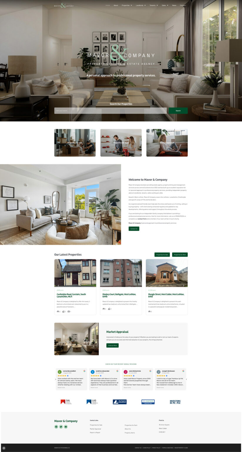 Mavor & Company’s services span the Lothians, Lanarkshire, Strathclyde, and parts of Fife and the Borders, offering tailored solutions to suit every client’s needs. From accurate property valuations and strategic marketing to professional management and tenant support, the company delivers a complete service designed to achieve the best possible results.