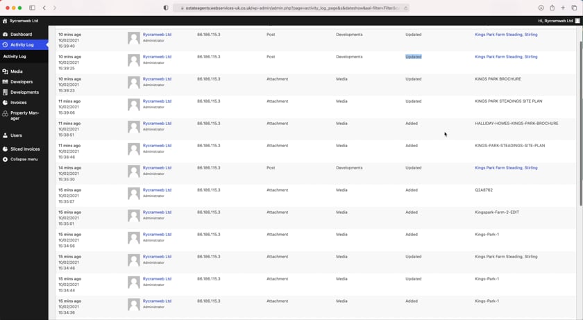 The activity log plugin is not part of the Property Hive plugin, it is added by Rycramweb Ltd as an add on to the CRM.