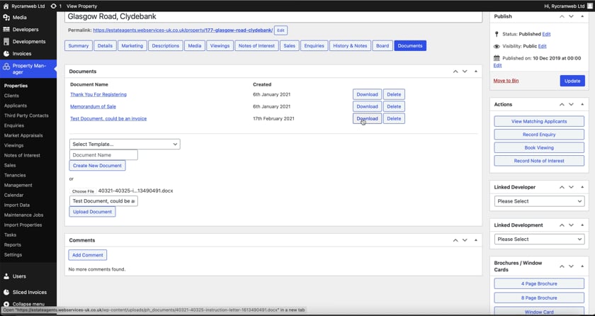 The developments plugin is not part of the Property Hive plugin, it is created by Rycramweb Ltd as an add on to the CRM.